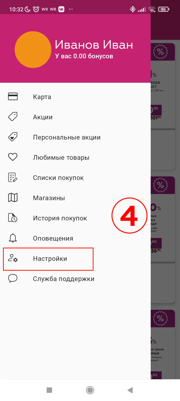 4. Зайдите в приложение и выберите пункт "Настройки"